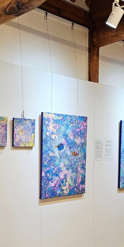김혜원 작가는 파도가 부서지며 형성된 즉흥적이고 리드미컬한 '물결 라인'으로 인연의 결합과 해체의 무수한 반복을 표현한다. 바닷가에서 자란 작가에게 바다의 물거품, 물결은 작업의 주요 소재이자 예술적 영감의 원천으로 작용한다. 작품 속 실타래처럼 얽힌 물결은 이어지고 흩어짐의 반복인 복잡한 삶의 관계를 상징하며, 그 사이 점은 '윤슬'로 인생을 비추는 빛을 의미한다. 장지에 여러 차례 색을 올리고 말리는 작업은 오랜 기다림을 필요로 하는데, 작가는 이 과정에 정화와 치유의 감정을 담는다. 이처럼 김혜원 작가는 바다와 인연의 관계성을 아름다운 물결로 풀어내며 고독한 현대인의 삶에서 이웃 간의 교감을 끌어내고, 고단한 삶을 위로하는 치유의 힘을 전한다.