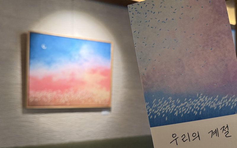 작가는 행복이란 과거나 미래에 있는 것이 아니라, 바로 여기, 지금 이 순간에 있다고 말합니다. 그는 따스한 바람과 길가에 핀 예쁜 꽃을 보며 평화로움을 느끼는 봄, 시원한 아이스 아메리카노와 맥주 한 잔에 기쁨을 느끼는 여름, 높고 푸른 하늘과 단풍이 어우러지는 가을, 크리스마스와 첫눈을 기다리며 설레는 겨울 등, 흘러가는 계절 속에서 행복을 찾습니다. 매 순간을 소중히 들여다보고 그려내는 작가의 따스한 시선은 작품 속 작은 동물, 휘날리는 잎, 반짝이는 별 등을 통해 엿볼 수 있습니다. 피곤하고 힘든 하루의 끝을 작가의 작품을 감상하며 기분 좋게 마무리하는 것은 어떠실까요?