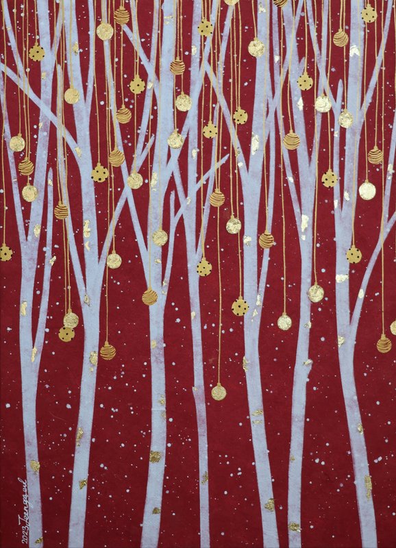 작가는 행복이란 과거나 미래에 있는 것이 아니라, 바로 여기, 지금 이 순간에 있다고 말합니다. 그는 따스한 바람과 길가에 핀 예쁜 꽃을 보며 평화로움을 느끼는 봄, 시원한 아이스 아메리카노와 맥주 한 잔에 기쁨을 느끼는 여름, 높고 푸른 하늘과 단풍이 어우러지는 가을, 크리스마스와 첫눈을 기다리며 설레는 겨울 등, 흘러가는 계절 속에서 행복을 찾습니다. 매 순간을 소중히 들여다보고 그려내는 작가의 따스한 시선은 작품 속 작은 동물, 휘날리는 잎, 반짝이는 별 등을 통해 엿볼 수 있습니다. 피곤하고 힘든 하루의 끝을 작가의 작품을 감상하며 기분 좋게 마무리하는 것은 어떠실까요?