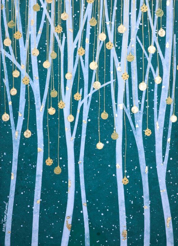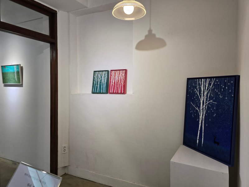 작가는 행복이란 과거나 미래에 있는 것이 아니라, 바로 여기, 지금 이 순간에 있다고 말합니다. 그는 따스한 바람과 길가에 핀 예쁜 꽃을 보며 평화로움을 느끼는 봄, 시원한 아이스 아메리카노와 맥주 한 잔에 기쁨을 느끼는 여름, 높고 푸른 하늘과 단풍이 어우러지는 가을, 크리스마스와 첫눈을 기다리며 설레는 겨울 등, 흘러가는 계절 속에서 행복을 찾습니다. 매 순간을 소중히 들여다보고 그려내는 작가의 따스한 시선은 작품 속 작은 동물, 휘날리는 잎, 반짝이는 별 등을 통해 엿볼 수 있습니다. 피곤하고 힘든 하루의 끝을 작가의 작품을 감상하며 기분 좋게 마무리하는 것은 어떠실까요?