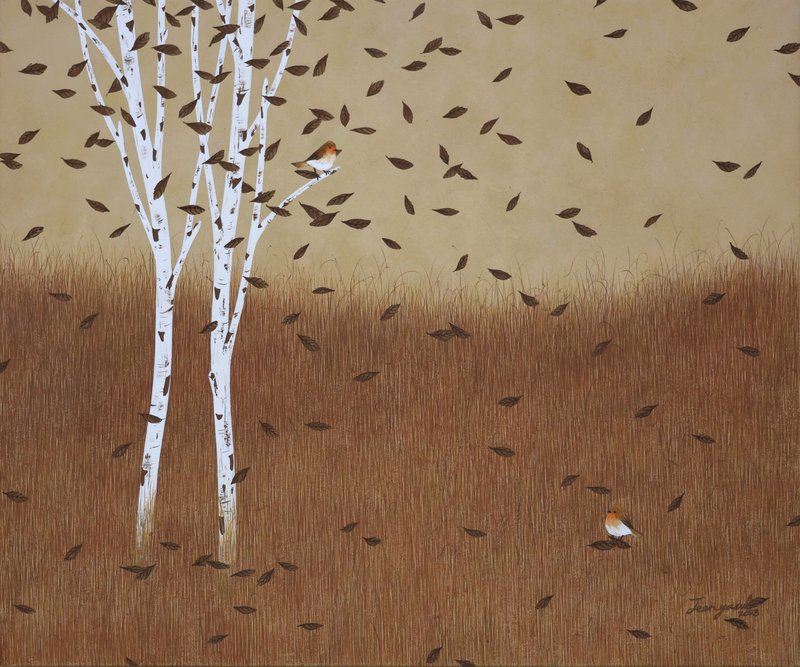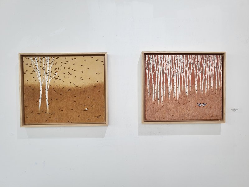 작가는 행복이란 과거나 미래에 있는 것이 아니라, 바로 여기, 지금 이 순간에 있다고 말합니다. 그는 따스한 바람과 길가에 핀 예쁜 꽃을 보며 평화로움을 느끼는 봄, 시원한 아이스 아메리카노와 맥주 한 잔에 기쁨을 느끼는 여름, 높고 푸른 하늘과 단풍이 어우러지는 가을, 크리스마스와 첫눈을 기다리며 설레는 겨울 등, 흘러가는 계절 속에서 행복을 찾습니다. 매 순간을 소중히 들여다보고 그려내는 작가의 따스한 시선은 작품 속 작은 동물, 휘날리는 잎, 반짝이는 별 등을 통해 엿볼 수 있습니다. 피곤하고 힘든 하루의 끝을 작가의 작품을 감상하며 기분 좋게 마무리하는 것은 어떠실까요?