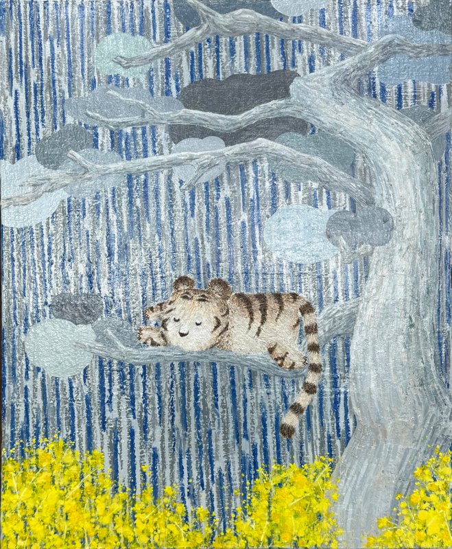 우리는 누구나 순수하고 따뜻한 본래의 심성을 가지고 태어난다. 이은희 작가는 자신의 작품 세계를 구축해 나가는 여정을 통해 잊혀진 본래 순수한 면목을 되찾고자 한다. 작가의 화면 속 아기 호랑이는 따뜻하고 몽환적으로 표현된 숲을 자유롭게 누비며 어린 시절의 천진난만함을 드러낸다. 호랑이는 작가 자신의 또 다른 자아이며, 삶의 원초적 에너지를 상징한다. 이은희 작가의 작업 본질은 선과 색, 붓질과 흘림을 통해 자연의 묘사 이면의 본질을 탐구하는 행위이다. 스케치 없는 즉흥성과 흩뜨린 물감 위에 쌓아 올리는 색채의 층위는 무질서에 가까운 자유로움을 품는다. 그러나 이 무질서는 곧 질서가 되고, 놀이처럼 시작된 작업은 정교하고 독창적인 자신만의 언어로 확장된다. 자연스럽게 이루어지는 선의 흐름, 겹쳐진 색의 밀도는 삶의 관계성과 유기성을 직관적으로 드러낸다. 작가의 조형 언어는 우연을 통한 발견 같은 것이다. 그것은 놀이에 가깝고 재미있는 호기심에 따른 실험과 같다. 추상과 구상의 경계를 넘나드는 이은희 작가의 작업은, 캔버스 위를 자유롭게 누비는 어린 호랑이와 함께, 자신 안에 숨겨져 있던 본래의 심성을 다시 마주할 수 있을 것이다.