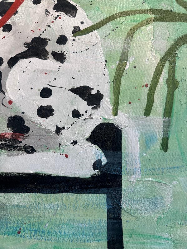 이소 작가는 귀엽고 사랑스러운 캐릭터를 통해 감각적이고 따뜻한 세계를 형성한다. 달콤한 디저트처럼 다채롭고 부드러운 색채, 동화 속 한 장면처럼 환상적인 분위기 속에서, 관람자는 잠시 현실을 잊고 작은 위로를 얻는다. 작가는 일상에서 얻은 경험을 캐릭터에 투영하여 친근한 서사를 만들어낸다. 아크릴, 유화, 오일파스텔, 모델링페이스트, 젤 스톤 등 다양한 재료를 믹스매치하며, 각각의 감정과 장면에 따라 질감과 표현을 달리해 풍부한 감각적 경험을 제공한다. 화면 위에 구현된 색감과 질감의 레이어는 단순한 귀여움을 넘어, 작은 순간의 온기와 섬세한 감정을 포착한다. 한편, '노인 시리즈'에서는 보다 깊고 여유로운 감정선을 탐구한다. 면 분할을 통한 배경 구성이 시각적 리듬을 만들고, 노인의 쓸쓸하지만 평온한 표정과 일상의 장면은 그림에 진중한 울림을 더한다. 이소 작가의 작업은 부드러움과 진중함을 모두 품고 있다. 작가는 보는 이로 하여금 각자의 기억과 감정을 떠올리도록 만든다.
