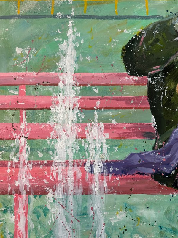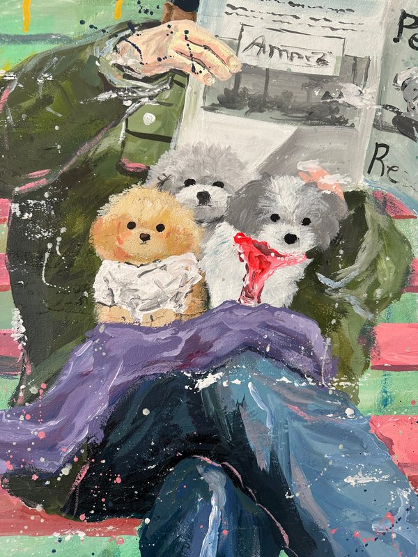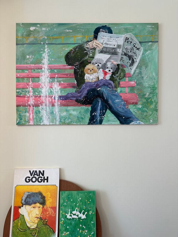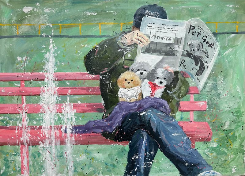 달콤한 색이 화면을 가득 채웁니다. 이소 작가의 캐릭터들은 디저트처럼 부드럽고, 동화처럼 다정합니다. 화면 아래에는 다양한 이야기들이 층층이 쌓여 있습니다. 어떤 날의 웃음, 어떤 밤의 위로 등 조금은 쓸쓸하지만 너무나 포근한 감정의 결과도 같이 말입니다. 작가는 일상의 경험을 작은 캐릭터 안에 숨겨 놓습니다. 그리고 그것을 아크릴, 오일, 모델링 페이스트 같은 다양한 재료로 다시 짜맞추는 과정을 통해서 질감은 고르고 다채로워지며, 자유로운 색의 표현을 보여주게 됩니다. 작가의 그림은 작고 사소한 장면들을 품고 있습니다. 그러나 그 속에는 감동과 따뜻한 이야기들이 함께 어우러지며 잔잔하고 단단한 감정을 불러일으키게 됩니다. 다른 작품에서는 노인이 등장하기도 하는데요, 면 분할된 배경은 공간을 열고, 노인은 미소로 그 공간을 채우며 쓸쓸함과 편안함이 나란히 공존합니다. 다양한 감정을 느낄 수 있게 해주는 이소 작가의 작품을 같이 관람해 보는 것은 어떨까요?
