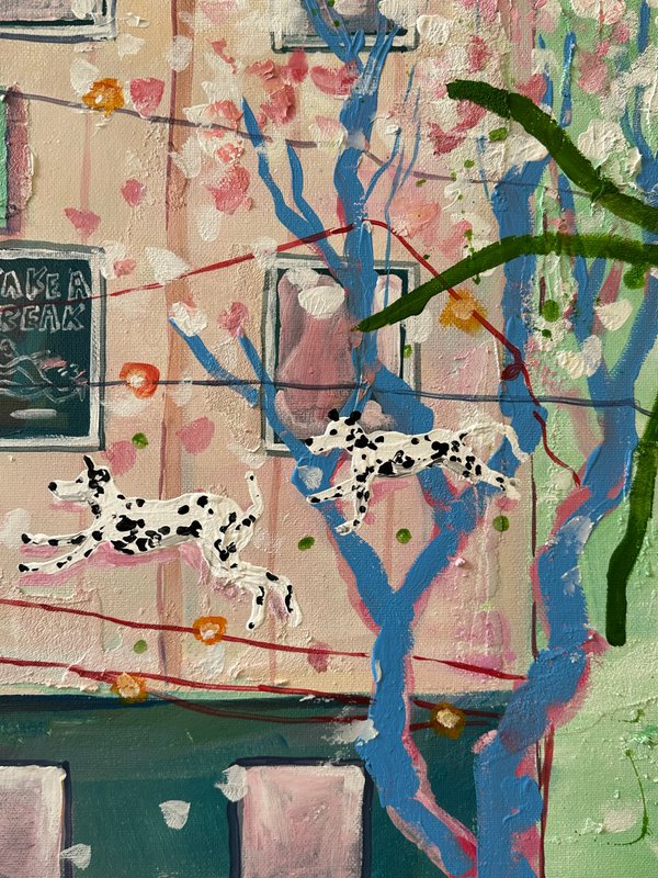 달콤한 색이 화면을 가득 채웁니다. 이소 작가의 캐릭터들은 디저트처럼 부드럽고, 동화처럼 다정합니다. 화면 아래에는 다양한 이야기들이 층층이 쌓여 있습니다. 어떤 날의 웃음, 어떤 밤의 위로 등 조금은 쓸쓸하지만 너무나 포근한 감정의 결과도 같이 말입니다. 작가는 일상의 경험을 작은 캐릭터 안에 숨겨 놓습니다. 그리고 그것을 아크릴, 오일, 모델링 페이스트 같은 다양한 재료로 다시 짜맞추는 과정을 통해서 질감은 고르고 다채로워지며, 자유로운 색의 표현을 보여주게 됩니다. 작가의 그림은 작고 사소한 장면들을 품고 있습니다. 그러나 그 속에는 감동과 따뜻한 이야기들이 함께 어우러지며 잔잔하고 단단한 감정을 불러일으키게 됩니다. 다른 작품에서는 노인이 등장하기도 하는데요, 면 분할된 배경은 공간을 열고, 노인은 미소로 그 공간을 채우며 쓸쓸함과 편안함이 나란히 공존합니다. 다양한 감정을 느낄 수 있게 해주는 이소 작가의 작품을 같이 관람해 보는 것은 어떨까요?