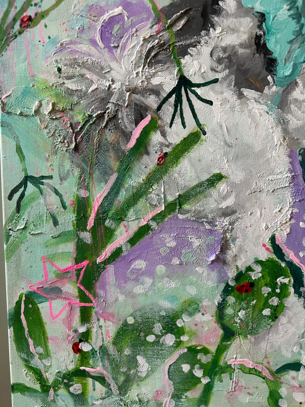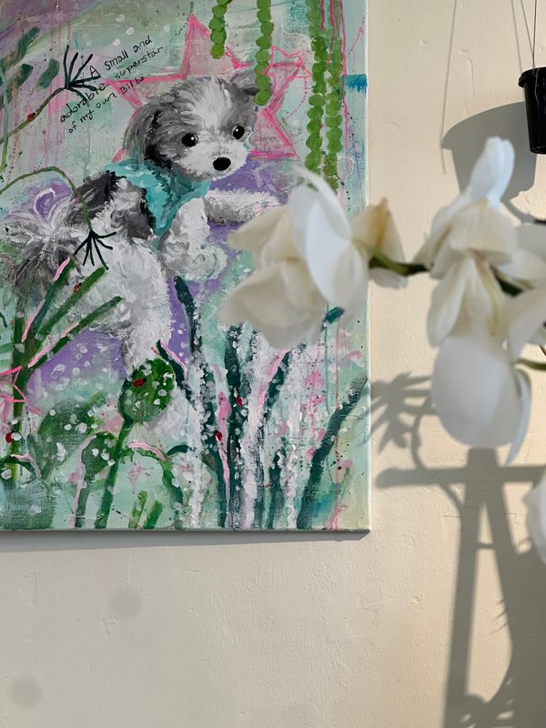 이소 작가는 귀엽고 사랑스러운 캐릭터를 통해 감각적이고 따뜻한 세계를 형성한다. 달콤한 디저트처럼 다채롭고 부드러운 색채, 동화 속 한 장면처럼 환상적인 분위기 속에서, 관람자는 잠시 현실을 잊고 작은 위로를 얻는다. 작가는 일상에서 얻은 경험을 캐릭터에 투영하여 친근한 서사를 만들어낸다. 아크릴, 유화, 오일파스텔, 모델링페이스트, 젤 스톤 등 다양한 재료를 믹스매치하며, 각각의 감정과 장면에 따라 질감과 표현을 달리해 풍부한 감각적 경험을 제공한다. 화면 위에 구현된 색감과 질감의 레이어는 단순한 귀여움을 넘어, 작은 순간의 온기와 섬세한 감정을 포착한다. 한편, '노인 시리즈'에서는 보다 깊고 여유로운 감정선을 탐구한다. 면 분할을 통한 배경 구성이 시각적 리듬을 만들고, 노인의 쓸쓸하지만 평온한 표정과 일상의 장면은 그림에 진중한 울림을 더한다. 이소 작가의 작업은 부드러움과 진중함을 모두 품고 있다. 작가는 보는 이로 하여금 각자의 기억과 감정을 떠올리도록 만든다.