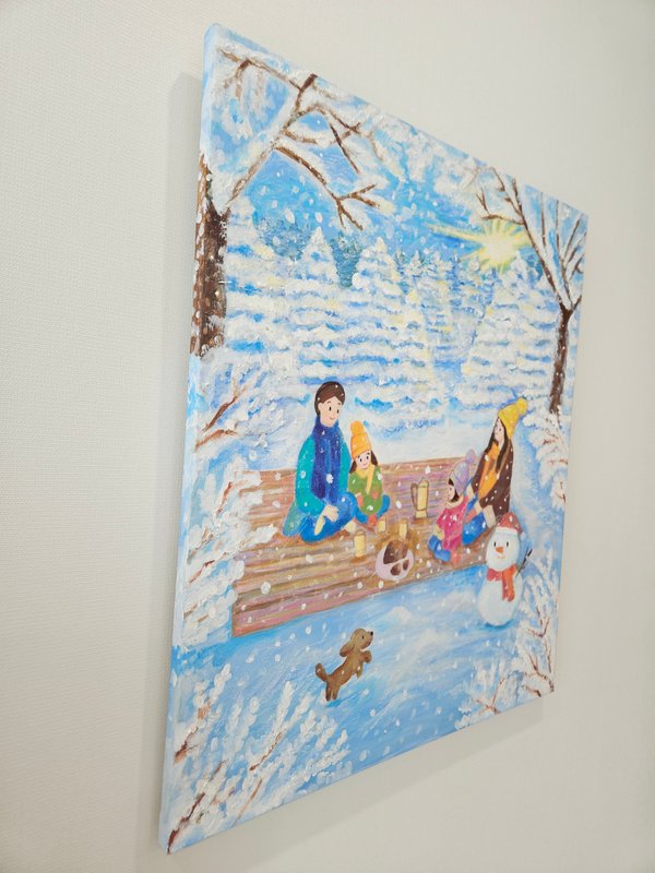 작품은 자연과 가족이 이루는 평온한 순간을 따뜻한 색감과 조화로운 구성을 통해 표현합니다. 숲과 호수, 들판과 나무 등 자연적 요소는 사슴 가족과 함께 어우러지며 평화로운 분위기를 형성합니다. 감상자는 작가의 작품 속에서 자연의 조화로운 순간을 경험하게 되며, 또한 사슴 가족의 평온하고 사랑스러운 모습을 통해 안정감과 따뜻한 위로를 제공받습니다. 작품을 통해 자연과 함께하는 삶의 가치와 조화로운 관계에 대해 다시금 생각해 보는 시간을 경험하길 바랍니다.