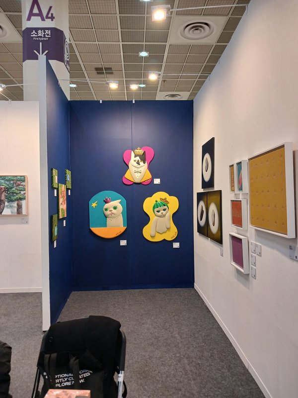 조각가이자 미술 교사인 임상준 작가는 스컬피 점토를 활용하여 고양이의 표정과 움직임을 섬세하게 표현하는 작업을 진행한다. 평면과 입체의 경계를 넘나드는 반입체 조형 방식을 통해 고양이의 다양한 모습을 담아내며, 각 작품이 미묘하게 다른 개성을 지니도록 구성한다. 작품에 등장하는 고양이는 작가가 기르는 고양이로 평면과 입체, 질감과 장식의 조화를 통해 형태적 깊이를 더하고, 감상자로 하여금 생명의 힘을 직관적으로 경험할 수 있도록 유도한다. 작가는 작품을 통해 고양이가 지닌 특유의 매력을 강조하는 동시에, 생명의 힘을 담은 예술적 기록으로 자리매김하고자 한다. 이를 통해 감상자는 고양이의 표정 하나, 몸짓 하나에서도 생동감을 느끼며, 작품이 가진 의미를 조형적 언어로 바라보게 된다.