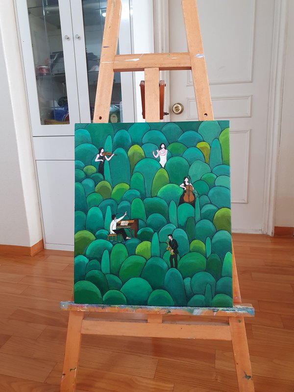 김경희 작가는 자연에 대한 연구를 통해 얻은 영감을 작품으로 표현한다. 자연을 바라보는 작가의 따스한 시선이 담긴 작품은 자연 풍경의 단순히 재현이 아니라, 음악이라는 주제와 연결되어 색다른 아름다움을 선사하고 있다. 작품에서 나타나는 악기, 멜로디의 형상이나, 리듬감 넘치는 장면들은 음악에 대한 작가의 고민과 자신이 존경한 음악가들의 삶에 대한 오마주 표현이다. 작가의 손길을 거쳐 감각적으로 펼쳐진 자연과 음악이라는 서로 다른 주제들은 작품이 캔버스에 머물러 있지 않고, 그 너머로 뻗어나가며 매 순간 감상자에게 다채로운 매력을 선물할 수 있게 한다.