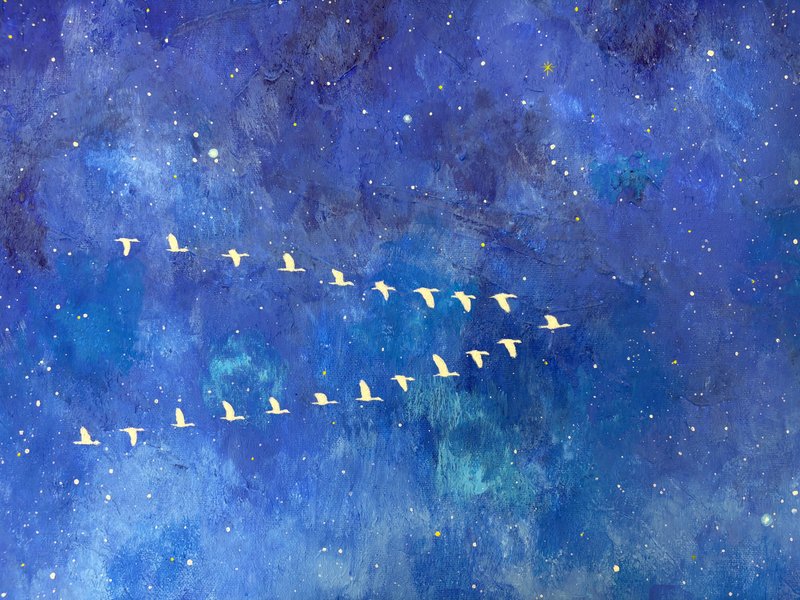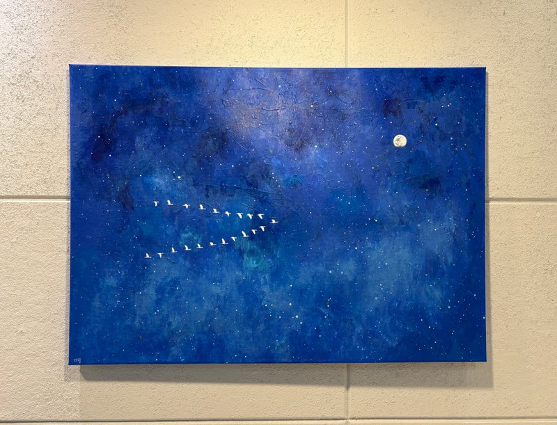 작품 속 깊고 푸른 밤하늘을 유유히 날아가는 철새들은 자유와 동경, 희망과 추억을 상징합니다. 하늘에 떠 있는 별들은 단순한 천체가 아니라, 우리의 기억과 감정이 머무는 특별한 장소로 다가옵니다. 이 작품을 마주한 우리는 어린 시절 밤하늘을 올려다보며 느꼈던 감동, 별자리에 담긴 호기심과 상상, 그리고 별빛 아래에서 시작된 운명 같은 인연들을 떠올릴 수 있습니다. 작가는 이처럼 개인의 기억과 감성을 조용히 두드리며, 보는 이가 자신만의 이야기를 떠올릴 수 있는 여운을 남깁니다. 자신만의 감성으로 작품을 해석해 보고 싶은 분들에게 이 작품을 추천합니다. 하늘을 나는 철새처럼, 별빛을 따라 당신의 기억도 아름답게 날아가기를.