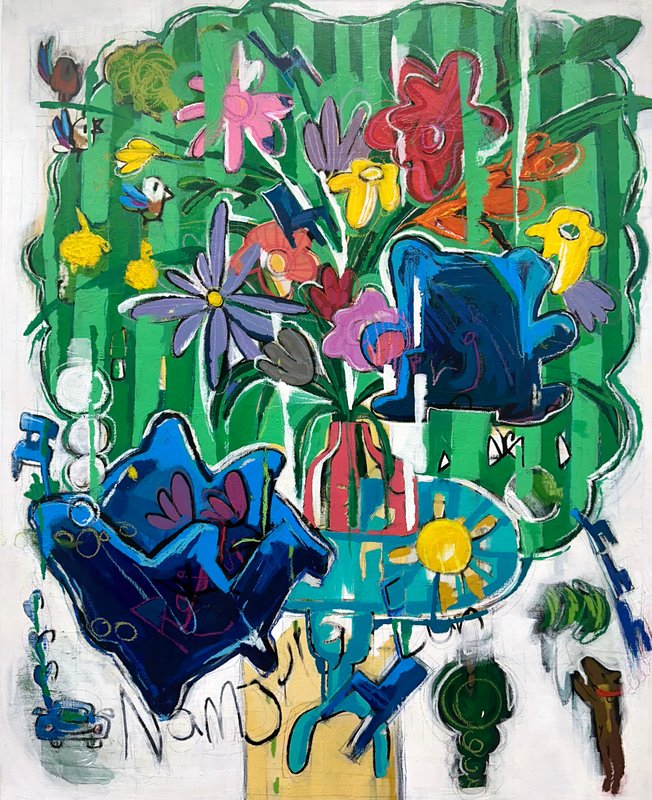 우리가 흔히 생각하는 의자는 휴식과 안락함을 상징한다. 그러나 기울어진 의자나 다리가 하나 부족한 의자는 불안정함을 내포하며, 일종의 긴장감을 불러일으킨다. 어릴 적, 두 개의 의자 다리만으로 균형을 잡으며 흔들리는 순간의 아슬아슬함을 즐겼던 경험이 있다. 불안정함을 인지하면서도 순간적인 재미를 위해 이를 감행하는 태도는 일종의 모험이자 자기 발견의 과정이라 할 수 있다. 남정은 작가는 안정적인 삶을 추구하며 살아왔음에도 불구하고, 오히려 그 안정성이 내면에 불안을 야기한다는 점을 깨닫는다. 이러한 내면의 변화를 시각화하기 위해 변형된 의자의 이미지를 활용하여 다양한 조형적 실험을 시도하고 있다. 이는 단순한 형태의 변형이 아니라, 현실 속의 자아와 새롭게 발견된 자아 사이의 관계를 탐색하는 과정이다. 기존의 자아와 새롭게 형성된 자아는 상반된 방향성을 지니고 있지만, 동시에 연속성을 갖고 있어 그 경계는 모호하게 흐려진다. 남정은의 작품에서 등장하는 여러 오브제와 기호화된 낙서는 이러한 다층적인 자아의 소통을 상징하며, 이는 곧 자아 성찰의 과정과 맞닿아 있다. 또한, 부분적으로 삭제된 페인팅 기법은 조화와 균형을 암시하며, 자아 간의 대화를 통한 성장과 발전을 시각적으로 드러낸다. 작가는 이러한 조형적 언어를 통해 스스로의 정체성을 더욱 깊이 탐구하며, 이를 작업의 주요한 주제로 삼아 지속적인 실험을 이어가고 있다.