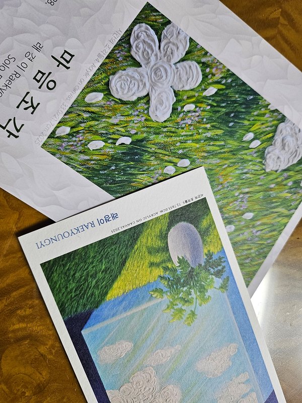 누구나 살아가며 마음속에 바람이 일 때가 있습니다. 당장이라도 달려 나가 바람에 자신을 맡기고 자유롭게 날아다니고 싶은 충동이 들기도 합니다. 마음 깊숙이 숨겨둔 우울을 세상 밖으로 꺼내어서 자유로워지고 싶지만, 현실은 녹록지 않습니다. 대신 래경이 작가의 작품 속 바람이 불어오는 방향으로 일렁이는 자연의 모습을 감상하며 자유를 느껴보시는 것은 어떠실까요? 온화하면서도 생동감이 넘치는 자연은 여러분의 가슴 속 요동치는 감정은 덤덤하게 위로해 줄 것입니다.