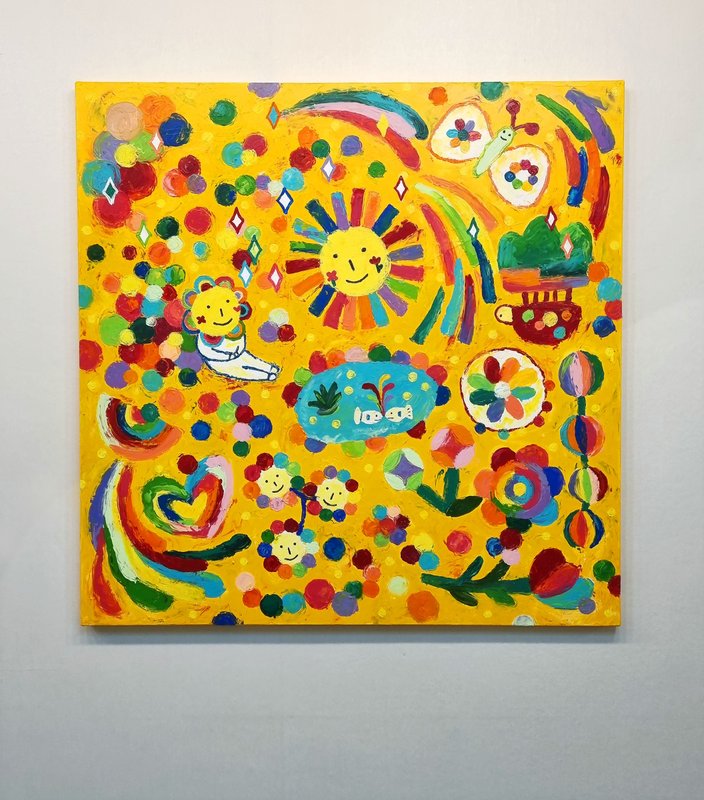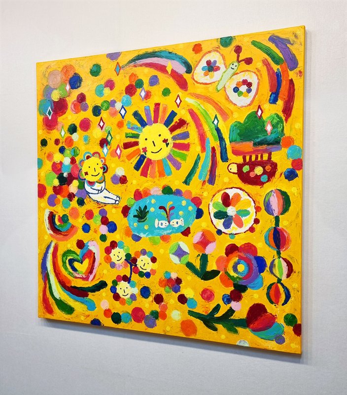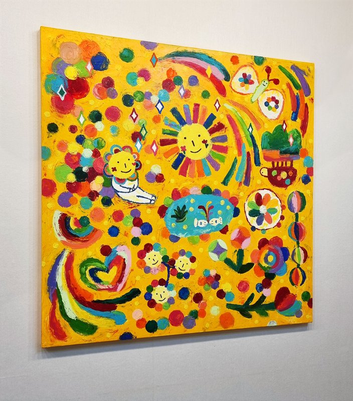 레드몽 작가의 작품은 일상의 감정을 색과 형태로 풀어내며, 감상자에게 긍정적인 에너지를 선사합니다. 강렬하면서도 조화로운 색채, 단순하지만 깊이 있는 구성은 보는 이들에게 자유로운 상상의 여지를 남깁니다. 작품에서 등장하는 노란색과 무지개는 밝고 따뜻한 분위기를 형성합니다. 노란색은 태양의 에너지를, 무지개는 희망과 조화를 상징하며, 이 두 요소가 함께 어우러져 보는 이들에게 따뜻한 감성을 전달합니다. 작품을 통해 우리는 현실에서 벗어나 새로운 세계를 꿈꾸고, 순수한 감정을 다시금 되찾을 수 있습니다. 작가는 '내 마음이 원하는 걸 볼 수 있고, 알아차릴 수 있는 사람이 돼야 한다'라고 말합니다. 작가의 작품을 통해 익숙한 풍경도 새로운 시선으로 바라보고, 단순한 색채 속에서도 깊이 있는 감정을 발견하여 내 마음에 있는 행복과 순수한 감정을 보고 알아차리는 경험을 하길 바랍니다.