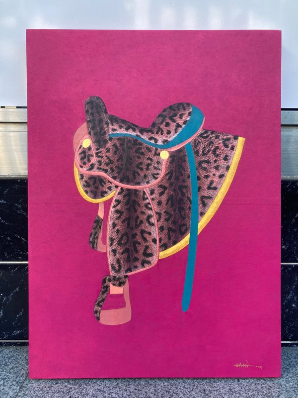 김다인 작가의 작품은 전통과 현대, 욕망과 균형이라는 두 가지 축을 중심으로 펼쳐집니다. 강렬한 색채와 대담한 구성을 통해 인간이 가진 근원적인 열망을 탐구하면서도, 자연과 전통적 상징을 활용해 그 속에서 균형을 찾아가려는 여정을 그려냅니다. 그의 작품을 구성하는 요소들은 위엄 있는 존재들입니다. 말안장은 신분과 권력에 대한 욕망을, 호랑이는 강인함과 보호의 의미를, 파초는 치유와 회복의 메시지를 담고 있습니다. 서로 다른 상징들이 각 작품에서 인간이 가진 다양한 감정과 가치관이 교차하는 순간을 포착합니다. 이 요소들은 단순히 과거의 유산을 현대적으로 풀어내는 데서 그치는 것이 아니라, 오늘날 우리가 살아가는 방식과 마음속에 자리한 욕망을 직관적으로 보여줍니다. 작가의 작품은 욕망과 균형 사이에서 흔들리는 우리의 모습을 비추는 거울과도 같습니다. 작품을 감상하며, 나에게 중요한 가치는 무엇인지, 내가 추구하는 것은 무엇인지 돌아보는 시간이 되길 바랍니다.