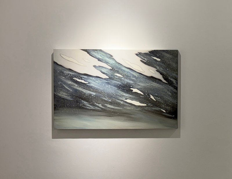 련수 작가는 인간관계의 구조와 감정의 층위를 깊이 있게 탐구하며, ‘기대’라는 감정을 중심으로 복잡한 심리적 상태를 시각화한다. 기대는 흔히 신뢰와 희망, 사랑을 수반하는 긍정적인 감정으로 여겨지지만, 동시에 불편함과 긴장을 내포한 다층 구조의 감정이다. 작가는 기대와 실망, 죄책감, 분노, 그리고 다시 기대에 이르는 반복적 순환을 구조적 관계로 인식하고, 이들의 감정적 인과 조건들을 회화라는 매체를 통해 감각적으로 드러내고자 한다. 이러한 사유와 감각은 작업에서 ‘상상 식물’로 등장하는데 이는 인간 감정의 자생성과 번식성을 은유하는 유기적 형태로, 물감의 번짐과 뭉침 같은 우연적이고 무의식적인 기법을 통해 화면 위에서 증식하고 서로 얽히며 하나의 생태계를 형성한다. 동시에 감각의 구조를 대변하는 장치인 ‘결’과 ‘빛’의 요소들에 블러 처리, 픽셀 분해 등의 기법을 사용하여 기대가 지닌 주관성, 왜곡 가능성 그리고 긍정적인 인식까지 폭넓게 시각화한다. 이러한 접근은 메를로 퐁티의 지각 현상학과도 연결된다.