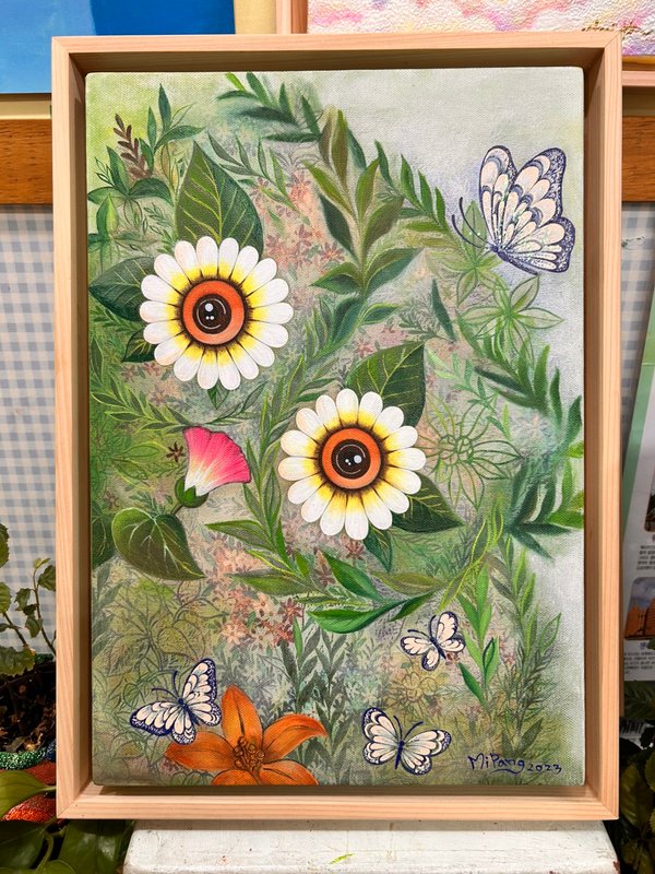 우리는 모두 저마다의 방식으로 삶의 무게를 감당하며 하루하루를 살아가고 있습니다. 그 속에서 잠시 멈추어, 숨을 고르는 순간이 필요합니다. 미팡 작가의 작품은 그런 순간에 쉼표가 되어줍니다. 그가 사용하는 독특한 젠탱글(zentangle) 기법은 마치 명상과도 같습니다. 반복과 몰입을 통해 혼란스러운 마음을 다독이고, 스스로를 바라보게 합니다. 붓끝에 실려 나오는 선과 색은 무의식을 따라 자유롭게 흘러가며, 잔잔한 연결의 파장을 일으킵니다. 작가만의 추상적 표현으로 보는 이에게도 치유를 해줍니다. 현실을 벗어난 상상의 세계, 의인화된 동물과 숲의 풍경은 화려하면서도 온화한 색채로 우리를 새로운 시선으로 이끌어 줍니다. 그의 작품은 단순한 동시대 현대를 살아가는 이들에게 위로와 쉼, 그리고 꿈꾸는 힘을 선물합니다.