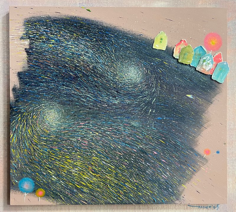 작품의 화면에는 사람은 보이지 않고, 그 대신 수많은 작은 집이 보인다. 이기영 작가의 작업은 사람 사이 교감의 근원지를 찾는 것에서부터 시작한다. 작가는 집을 교감의 근원지로 상정한다. '집'은 각자에게 의미가 다를 수 있으나, '나' 또는 '우리' 등의 존재와 항상 '함께' 하고 있기 때문이다. 이에 더하여 '집'은 내가 머물 수 있는 공간이라는 의미 뿐만 아니라, 자신의 꿈과 우리 모두가 행복한 미래를 함께하는 곳이기에 비로소 '공존'을 의미한다고 말한다. 작가는 이러한 집의 존재에 주목하여 여러 채의 집을 색터치를 주어 미니멀하게 표현하고, 감성을 자극하는 색채로 여유가 담긴 공간으로 보여주고자 하였다. 또한, 물감에 시멘트 가루 등을 섞는 방식을 활용하여 시간이 지날수록 단단해지는 집의 강인함을 투영시키고자 하였다. 작가는 이처럼 개개인의 이야기를 주제로 삼기보다는 한 발짝 나아가 거시적으로 바라보며 '공존'이라는 키워드 안에서 집의 의미를 다시금 생각해보게 한다.