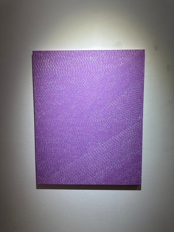 김경민 작가의 작업은 복잡한 언어나 설명 없이도 깊은 감정과 사유를 자연스럽게 환기시킵니다. 반복되는 점과 간결한 화면 구성은 단순해 보이지만, 그 안에는 작가의 세밀한 감정선과 조형적 감각이 응축되어 있습니다. 점의 밀도와 색의 농도, 화면을 가로지르는 흰 선은 감정의 리듬처럼 잔잔하게 퍼지며 관람자에게 조용한 울림을 전합니다. 작가는 오랜 시간에 걸쳐 점을 수련하듯 축적하며 내면을 응시하고, 이를 통해 감정과 경험을 시각적으로 기록합니다. 하나의 색으로 이뤄진 화면은 단조로움을 넘어서 다양한 감정의 층위를 담아내며, 관람자의 감각과 해석을 섬세하게 자극합니다. 바쁜 일상 속에서 잠시 멈추어 서서, 작품을 바라보며 마음을 고요히 가라앉히고 자신의 삶을 들여다보는 시간을 가져보는 것은 어떨까요? 지금 이 순간, 인생의 방향성을 조용히 점검하고, 본인만의 속도로 사유할 수 있는 시간을 가져보시길 권합니다.