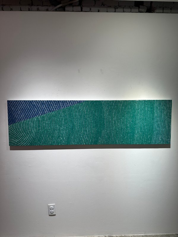 김경민 작가의 작업은 복잡한 언어나 설명 없이도 깊은 감정과 사유를 자연스럽게 환기시킵니다. 반복되는 점과 간결한 화면 구성은 단순해 보이지만, 그 안에는 작가의 세밀한 감정선과 조형적 감각이 응축되어 있습니다. 점의 밀도와 색의 농도, 화면을 가로지르는 흰 선은 감정의 리듬처럼 잔잔하게 퍼지며 관람자에게 조용한 울림을 전합니다. 작가는 오랜 시간에 걸쳐 점을 수련하듯 축적하며 내면을 응시하고, 이를 통해 감정과 경험을 시각적으로 기록합니다. 하나의 색으로 이뤄진 화면은 단조로움을 넘어서 다양한 감정의 층위를 담아내며, 관람자의 감각과 해석을 섬세하게 자극합니다. 바쁜 일상 속에서 잠시 멈추어 서서, 작품을 바라보며 마음을 고요히 가라앉히고 자신의 삶을 들여다보는 시간을 가져보는 것은 어떨까요? 지금 이 순간, 인생의 방향성을 조용히 점검하고, 본인만의 속도로 사유할 수 있는 시간을 가져보시길 권합니다.