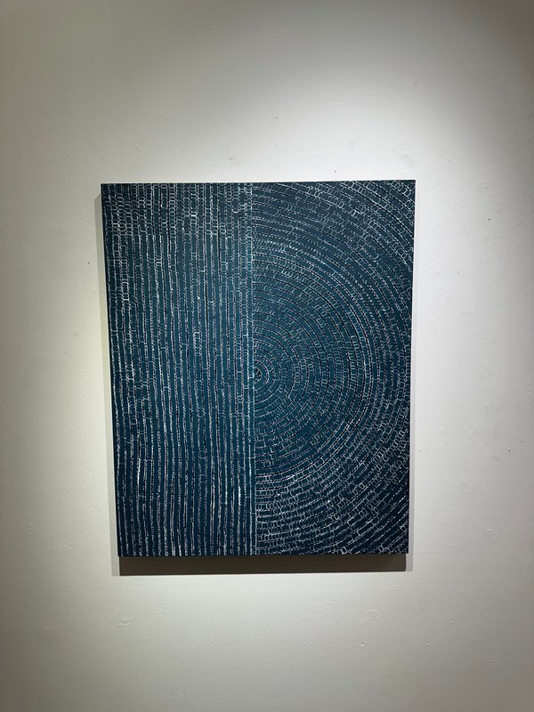 김경민 작가의 작업은 복잡한 언어나 설명 없이도 깊은 감정과 사유를 자연스럽게 환기시킵니다. 반복되는 점과 간결한 화면 구성은 단순해 보이지만, 그 안에는 작가의 세밀한 감정선과 조형적 감각이 응축되어 있습니다. 점의 밀도와 색의 농도, 화면을 가로지르는 흰 선은 감정의 리듬처럼 잔잔하게 퍼지며 관람자에게 조용한 울림을 전합니다. 작가는 오랜 시간에 걸쳐 점을 수련하듯 축적하며 내면을 응시하고, 이를 통해 감정과 경험을 시각적으로 기록합니다. 하나의 색으로 이뤄진 화면은 단조로움을 넘어서 다양한 감정의 층위를 담아내며, 관람자의 감각과 해석을 섬세하게 자극합니다. 바쁜 일상 속에서 잠시 멈추어 서서, 작품을 바라보며 마음을 고요히 가라앉히고 자신의 삶을 들여다보는 시간을 가져보는 것은 어떨까요? 지금 이 순간, 인생의 방향성을 조용히 점검하고, 본인만의 속도로 사유할 수 있는 시간을 가져보시길 권합니다.