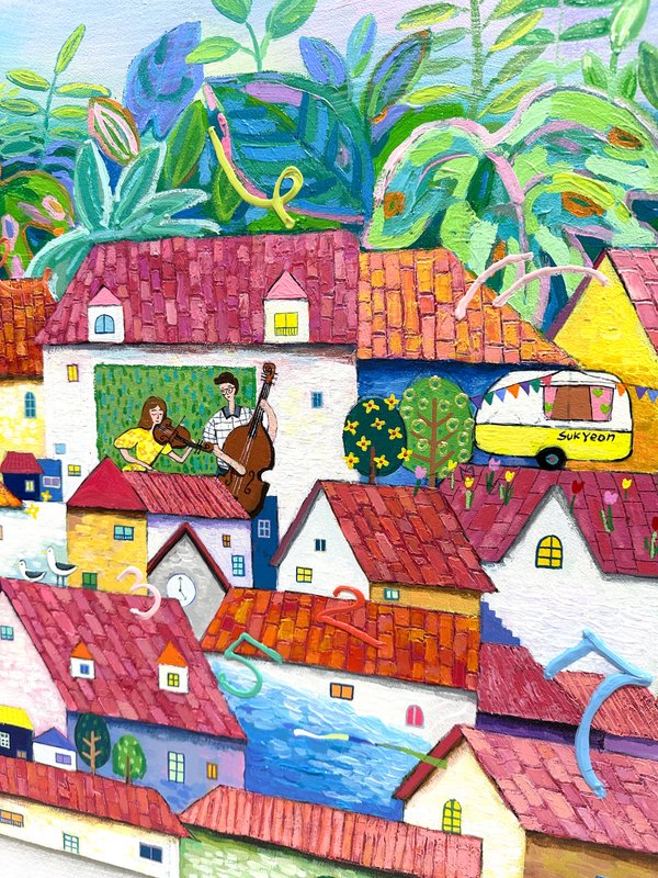 조숙연 작가의 작업은 ‘기억의 향기’를 시각화하는 작업을 진행해왔다. 작가는 후각이 감정과 기억을 가장 깊게 연결한다는 사실에 주목하며, 색과 형태, 서정적 내러티브를 결합해 향기로 기억되는 풍경을 구현한다. 작가가 선택한 회화적 언어는 명료한 선과 채도가 높은 색채이며, 이는 마치 동화 속 장면처럼 선명하고 또렷하게 관람자의 감각을 자극한다. 작가는 일상과 여행 속에서 마주한 특별한 순간들을 ‘향기’로 담아낸다. 하트, 나무, 바람개비, 하늘을 나는 풍선과 같은 오브제는 캔버스 위에서 감정의 잔상을 담는 일종의 저장소 역할을 수행한다. 이미지 하나하나가 회화적 장면이자 개인의 기억이기도 하며, 그것은 동시에 관람자의 기억을 자극한다. 인간은 오감 중 후각을 가장 오래 기억한다고 알려져 있다. 후각은 감정과 기억을 깊이 연결시키는 감각으로, 우리는 특정한 향기를 통해 과거의 감정과 순간을 더 또렷하게 떠올릴 수 있다. 관람자가 작가의 그림을 통해 자신의 추억을 떠올리고, 그 순간의 감정과 향기를 함께 느낄 수 있기를 바란다.