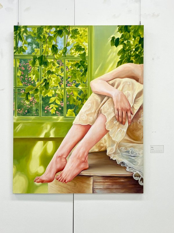 김지인 작가는 삶의 단편적 경험들을 채집하듯 수집하고, 그것을 이미지로 재조합하여 자신만의 감정 세계를 구성해 나갑니다. 화면 속 인물은 고요한 자연과 마주하고, 거울처럼 비친 물속 자아와 눈을 맞추고 있는데요, 이들은 단지 누워있거나 정적인 상태에 있는 것이 아닙니다. 그들은 작가의 내면처럼, 끊임없이 '나'를 응시하고, 나아가 관람자로 하여금 자기 존재를 되묻게 합니다. 작가의 작품은 우리가 외면해 온 진실한 '나'와 마주하게 합니다. 우리 안에는 하나의 확고한 자아가 있는 것이 아니라, 질문하고 흔들리며 다시 되묻는 자아가 있습니다. 철학자 키에르케고르가 말한 것처럼, 실존은 확실한 답이 아닌 끊임없는 선택과 책임의 자리에 서는 일입니다. 김지인 작가의 그림 앞에서, 삶의 정답을 묻기보다 자신에게 가장 정직한 선택은 무엇인가를 질문하며 깊은 사유를 경험해 보시길 바랍니다.