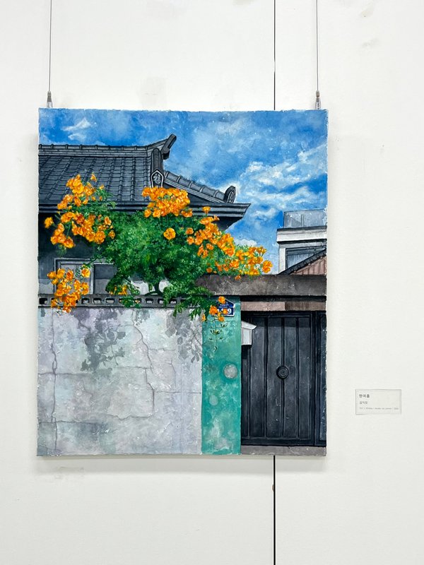 김지인 작가의 작업은 '자아'라는 심리적, 철학적 주제의 탐구로부터 시작된다. 자아란 무엇인가? 라는 질문은 단순히 나를 규정하는 개념이 아니라, 오히려 나 자신의 무지함을 깨닫고 내면을 깊이 파고들어 사유하는 출발점이 된다. 자신이 누구인지, 무엇을 느끼고 왜 그러한 감정이 드는지를 작가는 작업을 통해 묻고 또 답한다. 화면 속 색채는 감정을 시각적으로 번역하는 도구로서 기능하며, 격렬하거나 충돌하지 않고 균형을 이루려는 태도가 엿보인다. 이는 작가가 내면의 감정을 단순히 표출하는 것이 아니라, 그것을 감각하고 받아들이는 과정에 더 가깝다. 김지인 작가의 회화는 자아를 ‘완성된 실체’가 아닌 ‘진행 중인 탐색’으로 설정하며, 그 열린 태도는 관람자에게도 자기를 돌아보는 시간과 새로운 시각을 발견할 수 있는 기회를 제공한다. 결국 자아란 고정된 형상이 아니라 삶의 흐름 속에서 유동적으로 재구성되는 풍경임을 작품을 통해 전달하고자 한다.