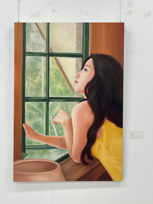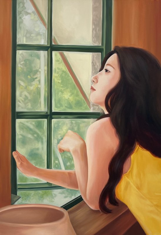 김지인 작가는 삶의 단편적 경험들을 채집하듯 수집하고, 그것을 이미지로 재조합하여 자신만의 감정 세계를 구성해 나갑니다. 화면 속 인물은 고요한 자연과 마주하고, 거울처럼 비친 물속 자아와 눈을 맞추고 있는데요, 이들은 단지 누워있거나 정적인 상태에 있는 것이 아닙니다. 그들은 작가의 내면처럼, 끊임없이 '나'를 응시하고, 나아가 관람자로 하여금 자기 존재를 되묻게 합니다. 작가의 작품은 우리가 외면해 온 진실한 '나'와 마주하게 합니다. 우리 안에는 하나의 확고한 자아가 있는 것이 아니라, 질문하고 흔들리며 다시 되묻는 자아가 있습니다. 철학자 키에르케고르가 말한 것처럼, 실존은 확실한 답이 아닌 끊임없는 선택과 책임의 자리에 서는 일입니다. 김지인 작가의 그림 앞에서, 삶의 정답을 묻기보다 자신에게 가장 정직한 선택은 무엇인가를 질문하며 깊은 사유를 경험해 보시길 바랍니다.