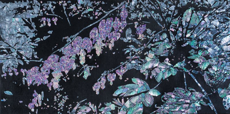 자개의 빛은 기억의 결을 닮았다. 일정하지 않은 꺾임과 예측할 수 없는 반사 속에서 우리는 자신의 사소하고 소중한 기억을 발견한다. 권예지 작가는 정체성의 근원을 추적하는 과정에서, 찬찬히 쪼개고 붙여낸 자개의 조각들을 통해 감정의 기억과 유년의 잔상을 오롯이 캔버스에 담아낸다. 자개는 작가가 사랑해 온 자연의 모습, 누군가와 나눈 대화, 특정 시간에만 떠오르는 이미지들처럼 일정하지 않은 형태로 반짝이며, 보는 이에게 감각과 감정의 잔재를 환기시킨다. 자개의 불균질한 표면은 감정의 중첩을 표현하는 동시에, 각 조각들은 마치 시간이 축적된 단면처럼 느껴지게 한다. 평면 위의 은은한 파스텔 빛은 내면 깊은 곳에서 천천히 올라오는 감정의 파동처럼 화면을 채우며, 단단한 물성 위에 스며드는 감각적 온기를 자아낸다. 자개 작업이 가진 노동집약성과 시간성은 곧, 우리가 일상 속에서 놓치기 쉬운 아름다움의 가치를 증명한다.