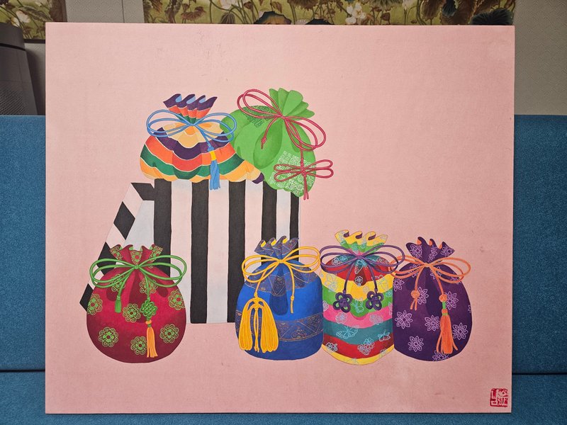 여러분들의 삶은 모두 안녕하신가요? 우리는 모두 일상에서 한 번쯤 좌절하고, 눈앞이 아득해지는 경험을 겪곤 합니다. 어쩌면 이는 인간의 숙명인지도 모르겠습니다. 그런데 윤남윤 작가는 이러한 좌절을 오히려 더 따뜻하고 화려하게 감싸안습니다. 그래서인지 그의 작품 속엔 사람들의 끝없는 바람과 기도, 수많은 밤을 지새운 자아 성찰, 그리고 스스로에게 향하는 어떤 믿음의 시간 등이 함께 깃들어 있습니다. 화면에서 강렬하고 다채로운 색감으로 그려진 전통 문양에는 작가가 부여한 축복의 의미가 가득합니다. 그 모양은 제각기 다르지만, 이는 한데 모여 왠지 우리에게 친숙한 이미지를 형성합니다. 작가의 진심이 투영된 화면 속 부적을 통해, 여러분들의 삶에도 길상이 가득하길 소망해 보세요.