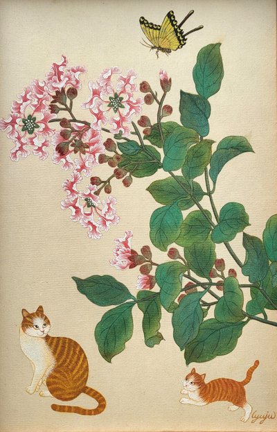 유주 작가는 동양화 진채 기법과 비단의 물성을 활용하여 정서적 안정과 '쉼'의 감각을 담은 작업을 이어오고 있습니다. 고양이 특유의 무심하면서도 깊은 시선을 중심으로 구성된 화면은, 관람자에게 정서적인 공감을 끌어냅니다. 화면 속 고양이들과 눈이 마주치는 순간, 우리는 멈추어 서게 됩니다. 비단 위에 천천히 스며든 따뜻한 색채와 다정한 시선은 지친 하루의 마음을 말없이 다독여 줍니다. 유주 작가의 작품은 바쁘게 흘러가는 일상 속에서도 잠깐의 여유와 쉼을 느끼게 해줍니다. 다정한 고양이 한 마리, 그 곁에 피어난 꽃들과 잔잔한 분위기의 장면은 마치 세상의 모든 존재가 영롱하고 소중하며 가치 있다고 말해주는 듯합니다. 가만히 앉아 고양이의 눈빛을 바라보며, 그 속에 자신만의 감정을 투영하여 평온한 순간을 발견해 보시길 바랍니다.