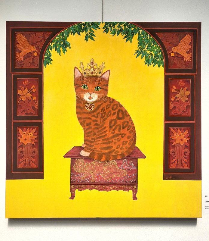 유주 작가는 동양화 진채 기법과 비단의 물성을 활용하여 정서적 안정과 '쉼'의 감각을 담은 작업을 이어오고 있습니다. 고양이 특유의 무심하면서도 깊은 시선을 중심으로 구성된 화면은, 관람자에게 정서적인 공감을 끌어냅니다. 화면 속 고양이들과 눈이 마주치는 순간, 우리는 멈추어 서게 됩니다. 비단 위에 천천히 스며든 따뜻한 색채와 다정한 시선은 지친 하루의 마음을 말없이 다독여 줍니다. 유주 작가의 작품은 바쁘게 흘러가는 일상 속에서도 잠깐의 여유와 쉼을 느끼게 해줍니다. 다정한 고양이 한 마리, 그 곁에 피어난 꽃들과 잔잔한 분위기의 장면은 마치 세상의 모든 존재가 영롱하고 소중하며 가치 있다고 말해주는 듯합니다. 가만히 앉아 고양이의 눈빛을 바라보며, 그 속에 자신만의 감정을 투영하여 평온한 순간을 발견해 보시길 바랍니다.