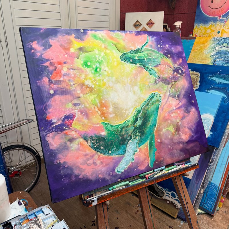 김규봉 작가는 순간순간의 감정에 충실하여 손이 가는 대로 작품에 솔직하게 담아냅니다. 작가에 따르면, 우리는 대개 각박한 현대 사회 속에서 진실한 감정을 외면한 채 애써 가면 뒤에 숨곤 합니다. 하지만 이것이 반복되다 보면, 그간의 배출되지 못하고 쌓인 감정들이 언젠간 고름처럼 터지게 됩니다. 그래서 작가는 그림을 그릴 때 만큼은 사회의 틀에서 벗어나, 있는 그대로의 자신을 솔직하게 드러낸다고 합니다. 작품 속 화면에는 사람의 직접적인 표정이 등장할 때도 있고, 고래나 사람의 형상이 나타나기도 합니다. 각 작품의 배경 색감이나 상황은 제각각인데, 이를 통해 우리는 미묘하게 다른 감정들을 느끼게 됩니다. 화면 속 공간은 적막하고 고요할 때도 있지만, 때로는 역동적이고 생명력 넘치는 모습도 찾아볼 수 있습니다. 작품을 통해 작가는 마치 관객에게 있는 그대로의 본인 느낌을 직면해보라고 격려하는 듯합니다. 여러분들도 김규봉 작가의 화면으로 들어가 솔직한 '나'의 진짜 감정을 마주해 보시길 추천 드립니다.
