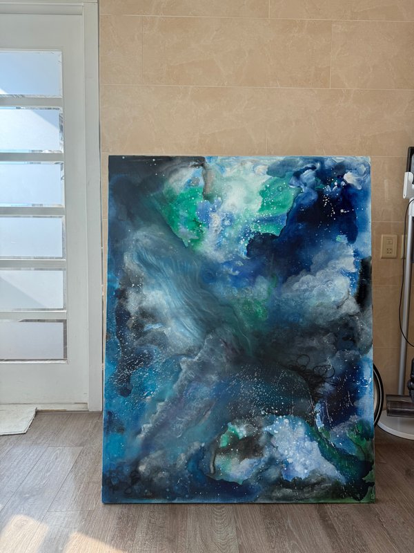 김규봉 작가의 작품은 마치 "흘러가는 순간을 있는 그대로 받아들여도 좋다"고 이야기 하는 것 같습니다. 우연하게 번지고 퍼지는 바닷속을 고래가 자유롭게 유영하는 모습은, 정해진 길이 아닌 스스로의 리듬에 몸을 맡기려는 작가의 철학과도 닮아 있습니다. 예측할 수 없는 순간들이 오히려 더 아름답게 빛나기도 하는 것처럼, 작가의 작품은 삶의 우연성을 긍정할 수 있는 용기를 담고 있습니다. 작품을 통해 여러분들도 마음을 편안하게 비우고, 나만의 속도로 흘러가는 것 자체가 이미 ‘해방’임을 자각해보는 시간을 가져보는 것은 어떠실까요?