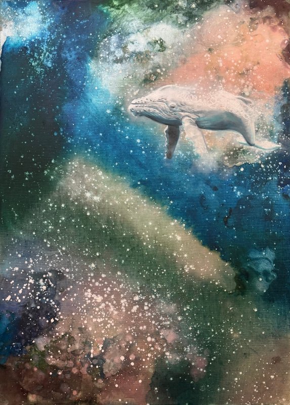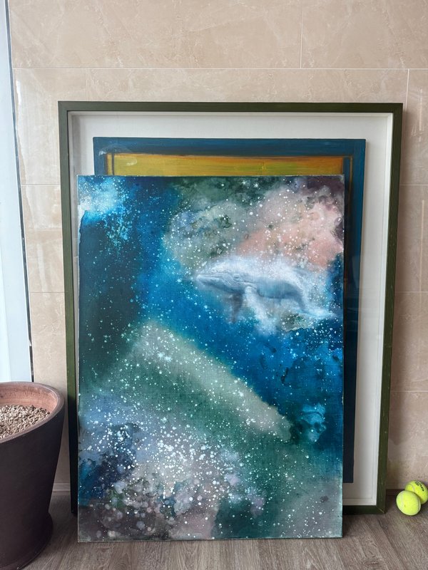 김규봉 작가의 작품은 마치 "흘러가는 순간을 있는 그대로 받아들여도 좋다"고 이야기 하는 것 같습니다. 우연하게 번지고 퍼지는 바닷속을 고래가 자유롭게 유영하는 모습은, 정해진 길이 아닌 스스로의 리듬에 몸을 맡기려는 작가의 철학과도 닮아 있습니다. 예측할 수 없는 순간들이 오히려 더 아름답게 빛나기도 하는 것처럼, 작가의 작품은 삶의 우연성을 긍정할 수 있는 용기를 담고 있습니다. 작품을 통해 여러분들도 마음을 편안하게 비우고, 나만의 속도로 흘러가는 것 자체가 이미 ‘해방’임을 자각해보는 시간을 가져보는 것은 어떠실까요?