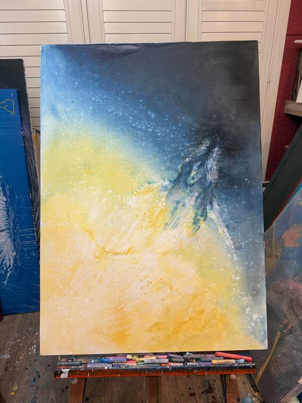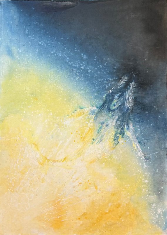 김규봉 작가의 작품은 마치 "흘러가는 순간을 있는 그대로 받아들여도 좋다"고 이야기 하는 것 같습니다. 우연하게 번지고 퍼지는 바닷속을 고래가 자유롭게 유영하는 모습은, 정해진 길이 아닌 스스로의 리듬에 몸을 맡기려는 작가의 철학과도 닮아 있습니다. 예측할 수 없는 순간들이 오히려 더 아름답게 빛나기도 하는 것처럼, 작가의 작품은 삶의 우연성을 긍정할 수 있는 용기를 담고 있습니다. 작품을 통해 여러분들도 마음을 편안하게 비우고, 나만의 속도로 흘러가는 것 자체가 이미 ‘해방’임을 자각해보는 시간을 가져보는 것은 어떠실까요?