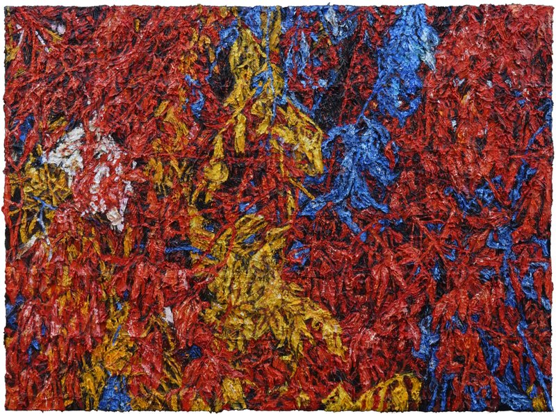 임호섭 작가는 주로 서로 얽히고 설킨 수풀과 나무를 캔버스에 담아낸다. 작가에게 나뭇가지는 서로를 뒤덮으며 환경에 따라 무수한 형태와 풍경을 만들어 내는 흥미로운 대상이다. 작가는 이러한 자연을 단순히 재현하는 것이 아니라, 다양한 형태로 서로를 뒤덮고 연결된 자연의 물성 그 자체를 탐구하고 표현한다. 작가의 화면은 나무의 진액과 같이 여러 형태가 뒤엉켜 붙어있다. 이는 이파리가 무성한 숲을 연상시키기도 하고, 겨울 낙엽과 같은 건조한 느낌을 자아내기도 한다. 그리고 화면을 자세히 들여다보면 반복된 격자무늬 패턴을 발견할 수 있다. 이 구조는 마치 철근이나 콘크리트가 건축물의 뼈대를 이루듯, 작품에 구조적 안정감과 견고함을 제공한다. 이러한 건축적인 요소는, 설치 작업에서 파생된 회화 작업이라는 작가의 작품 특성에서 기인한다. 입체가 평면 회화로 전환되면서, 작품의 뼈대 위 반복되는 붓질은 견고한 숲을 형성해 나간다. 그렇기에 임호섭 작가의 작품은, 우리가 흔히 떠올리는 재현적이고 평면적인 풍경을 넘어, 각종 덩어리 감을 통해 우리에게 시각뿐 아니라 촉각적인 경험까지 제공한다.