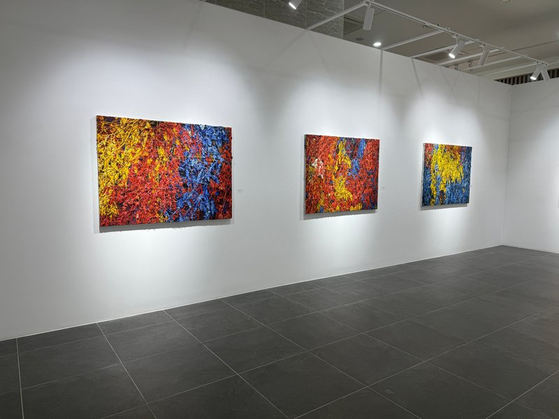 여러분이 떠올리는 '숲'의 이미지는 어떤 모습인가요? 아마 각자 떠올리는 숲의 모습은 모두 다른 풍경일 것입니다. 그만큼 숲은 여러 종의 나뭇가지와 줄기들이 견고하게 얽히고설켜 무수한 형상을 만들어 냅니다. 임호섭 작가는 이러한 자연의 유기적인 관계성을 한 화면에 압축하여 표현합니다. 작가는 작업 초반에 먼저 실을 이용해 화면에 격자무늬를 만들고, 실 위에 무늬가 희미해질 때까지 붓질을 반복합니다. 이때 격자무늬 패턴은 물성을 받쳐주는 뼈대인 동시에, 화면 속 좌표로서 기능하기도 합니다. 그리고 작가가 물감칠을 반복하는 행위는 작품의 물질성을 더 돋보이게 합니다. 이러한 작업 과정을 통해, 임호섭 작가의 화면은 점차 탄탄하고 안정적인 숲으로 변모해 나갑니다. 여러분들도 작가의 작품을 감상하며, 화면 속 생동감 넘치는 자연의 숲을 함께 거닐어 보시길 추천 드립니다.