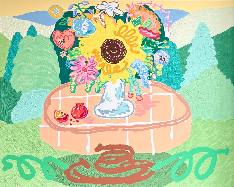 박효진 작가의 작업은 일상의 반복 속에서 쌓여가는 감정과 기억, 관계의 층위를 시각적으로 탐구하는 데서 출발한다. 그 중심에는 ‘테이블’이라는 일상의 장소가 있다. 그에게 테이블은 단순히 음식을 먹거나 물건을 놓는 생활 도구가 아니다. 테이블은 사람들 사이의 관계가 교차하고, 감정의 진동이 머물며, 시간이 응축되는 심리적 장소로 기능한다. 작가는 이 테이블 위에 남겨진 감각의 잔상들에 주목하며, 이를 바탕으로 화면 위에 심리적 흐름과 상상된 장면들을 구성해 나간다. 작품 속 장면이나 오브제는 어떤 고정된 질서나 서사를 따르지 않는다. 대신 감정의 리듬과 시선의 흐름, 그리고 내면의 정서에 따라 유동적으로 배열된다. 이에 따라 작가의 회화는 명확한 중심이나 구도를 갖기보다는 감정의 농도와 시간의 결을 따라 다층적으로 전개된다. 형태들은 고정되어 있지 않고, 선들은 감정의 구조에 따라 흐르며 리듬을 만들어낸다. 이러한 작품 속 요소들의 유동성은 작품에 생동감을 더하며, 보는 이에게는 하나의 고정된 해석이 아니라 감각적으로 감상할 수 있는 여지를 남긴다.