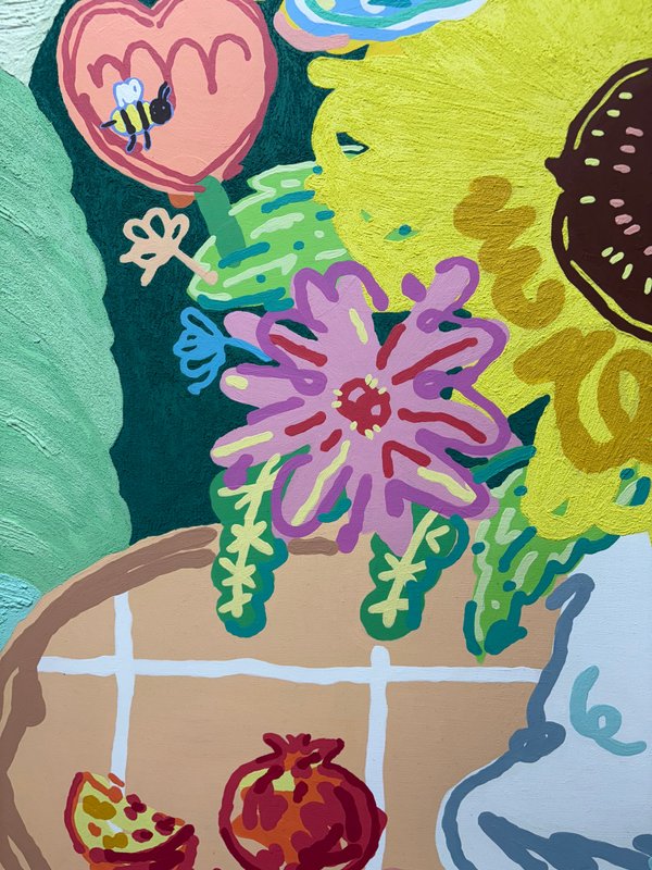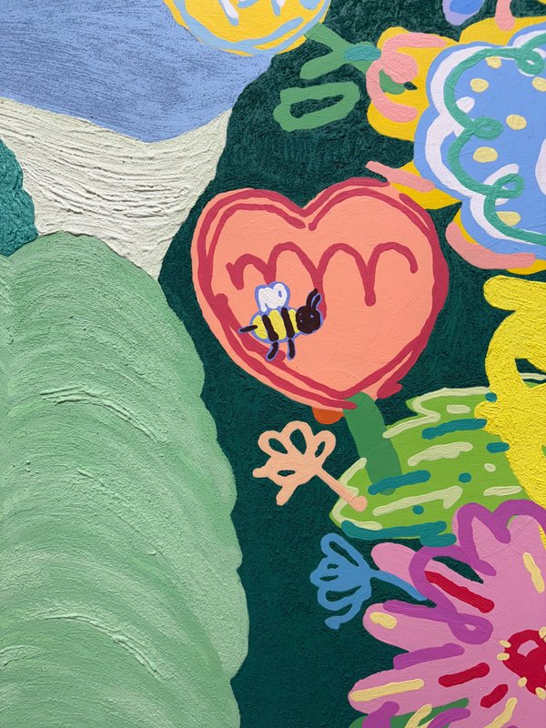 작가의 작업은 디지털 드로잉에서 출발합니다. 디지털 매체 특유의 즉시성과 분리성은 작가가 정서적 요소들을 명확히 인지하고 포착할 수 있게 하며, 이후의 회화 과정에서도 그 감각의 간격들이 유의미한 층으로 작용하게 합니다. 회화적 장치인 드로잉 적인 선의 흐름, 이미지 간의 간격과 밀도, 비정형적인 층 구조는 틀에 얽매이지 않은 채 일상이라는 익숙한 배경 속에서 감정이 어떻게 남고, 흐르고, 다시 떠오르는지를 시각적으로 탐구하는 과정을 보여줍니다. 테이블이라는 장소를 중심으로 감정의 층위를 드러내고, 감각의 흔적들을 화면 위에 쌓아 올리는 작업은 보는 이로 하여금 자기 내면과 마주하게 만드는데요. 이는 단순히 어떤 풍경을 보는 경험이 아니라, 일상 속 정서적 잔향을 느끼고 그 감정의 구조를 상상해 보게 하는 깊은 감상의 시간이 될 것입니다.