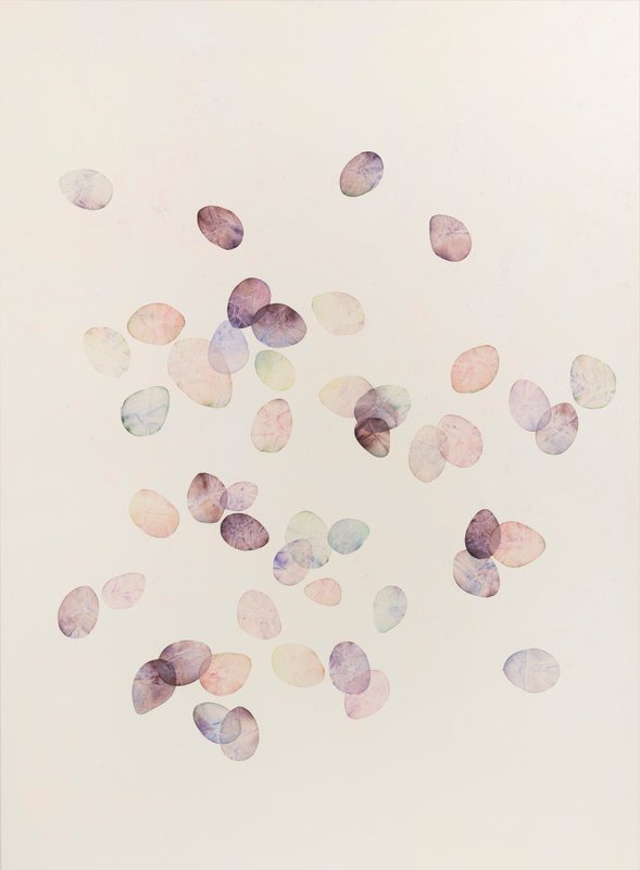 장건영 작가는 한지라는 매체의 물성을 탐구한다. 얇은 한지를 접어 주름을 만들고 안료를 푼 물에 담가 색이 스며들게 한다. 그리고 종이를 건져 말리고 펼치는 일련의 과정을 반복한다. 이때 종이의 굴곡과 결을 따라 안료는 매번 다른 결과를 만들어내고, 작가조차 어떤 형상이 만들어질지 알지 못한다. 완성된 작품은 종이 구김에 따라 규칙적인 도형을 만들어내기도 하며, 뜻밖의 조합을 형성하기도 한다. 이러한 작가의 <Floating> 시리즈는 말 그대로 '부유함'의 상태를 표현한다. 부유한다는 말은 고정된 의미나 완결된 서사로부터 벗어나, 변화에 반응하는 유연한 감각의 상태를 뜻한다. 작가는 오랜 해외 생활을 통해, 익숙했던 관계와 기억들이 흐릿해지는 감각을 몸소 체험했다고 한다. 그래서 조작이 가능한 결과물을 내놓는 작업보단, 불확실함을 포용하며 의도치 않은 시각적 효과를 활용하는 데 집중한다. 변화하는 시간 속 '부유함'이라는 감각이 만들어내는 자연스러운 조형성은 감상자들에게 새로운 시각적 경험을 제공한다.