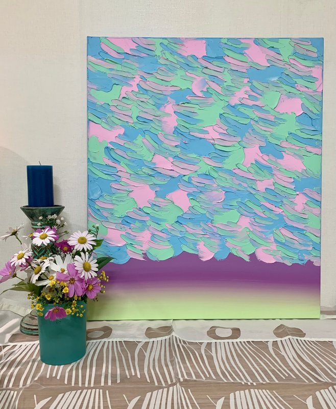 작품을 이루는 중요한 요소인 '색채'는 경우의 수에 따라 다양한 감정을 불러일으키는 힘을 가지고 있습니다. 리나 작가는 바로 이 색감을 활용하여 다채로운 감정의 빛깔을 표현합니다. 작가는 색채에 대한 남다른 애정을 바탕으로, 지치고 힘들 때나 모든 것을 내려놓고 싶을 때, 회화 작업을 통해 빛과 색을 마주하며 교감을 나눈다고 합니다. 그리고 이때 차곡차곡 정성스레 레이어링 된 각각의 색채는 한데 모여 마침내 하나의 아름다운 풍경을 만들어냅니다. 소리 없는 조형 언어로 펼쳐진 리나 작가의 경쾌한 빛의 향연을 통해, 여러분들도 무의식 속 각자의 색깔을 발견하고 마음 한구석을 위로받는 시간을 가져보시길 추천 드립니다.