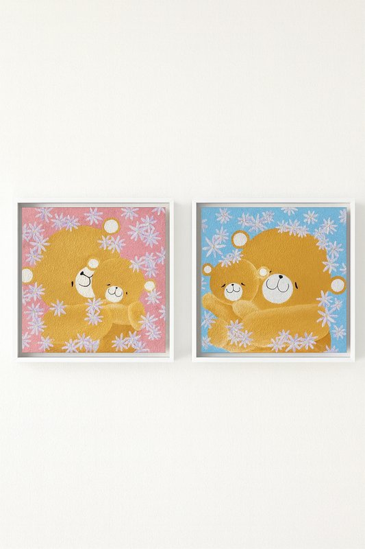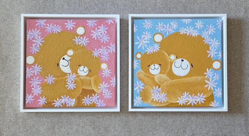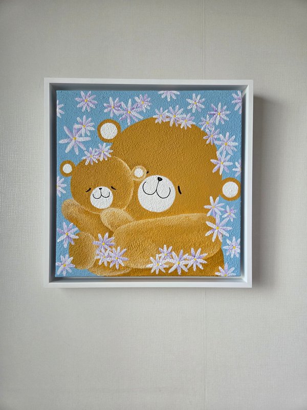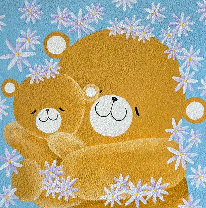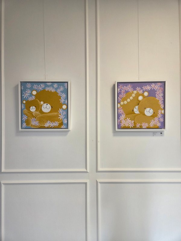 조안나 작가의 작품에는 언제나 눈을 감고 깊이 사색하는 '슬리핑 베어'가 등장한다. 사색이란 무심코 지나쳐왔던 것들을 떠올리는 시간으로, 반복되는 일상에서 삶의 본질을 탐구하게 한다. 여유가 부족한 급변하는 사회에서 현대인들에게 사색은 중요하고도 꼭 필요한 경험이다. 마치 이러한 메시지를 전하듯, 작품 속 슬리핑 베어는 편안하고 어떠한 고민거리도 없어 보이며 그저 서로 기대어 그 순간을 즐기는 듯한 모습입니다. 곰돌이는 캔버스 위 아크릴로 부드럽고 포근한 분위기로 묘사되며, 꽃과 나무 등 주변의 자연물은 편안한 분위기를 고조시킵니다. 아름다운 장면을 넘어 마음속 치유의 공간으로까지 작용하는 작가의 작품은, 현대 사회에서 느끼기 힘든 조용한 사색과 심적 안식의 경험을 제공한다.