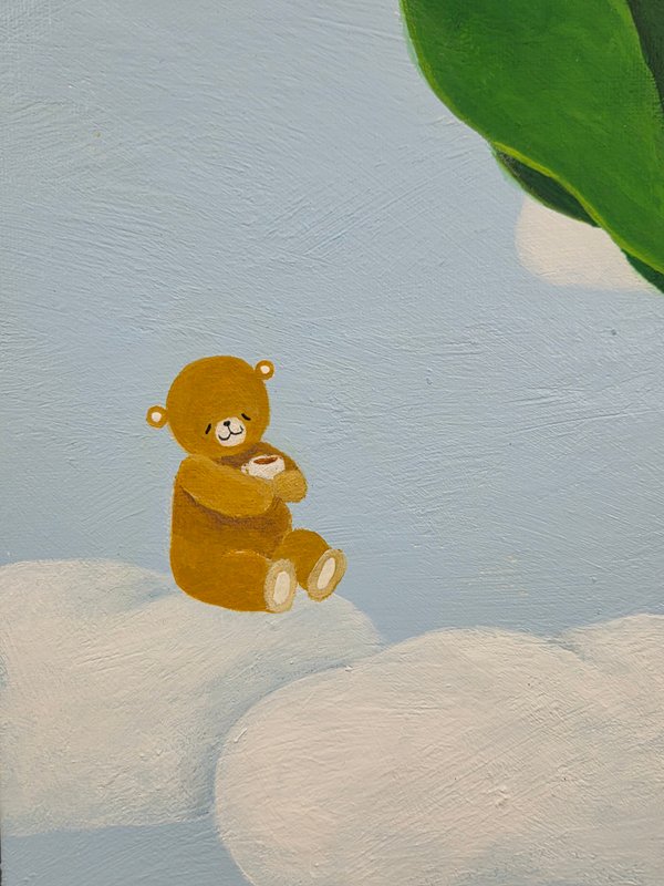 작품 속 슬리핑 베어는 무척이나 행복하고 여유를 만끽하고 있는 듯 보입니다. 여러분들도 이런 평온한 상태를 느껴본 적이 있으신가요? 어쩌면 급하고 빠르게 움직이는 현대 사회에서 자극적이고 스펙타클한 것에 익숙해진 우리는, 잠깐의 여유와 사색을 잊고 살아가고 있는지 모릅니다. 물론 성공과 목표를 달성하는 것도 중요하지만, 무엇보다 '나'의 존재를 인정하고 그 모습 그대로 받아들이는 것도 필요합니다. 화면 속 평온한 곰돌이처럼, 현생을 잠시 멈추고 여러분들 내면의 진솔한 목소리에 귀 기울여보는 것은 어떨까요? 잠깐의 사색을 통해, 피로를 회복하고 마음의 안정을 느껴보시길 추천 드립니다.