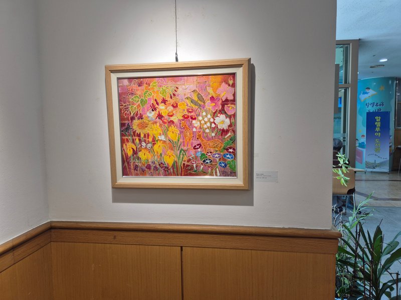 이숙희 작가의 작품에는 꽃, 나무 등 각종 식물과 다양한 동물이 등장합니다. 그런데 여기에는 종교적 의미가 깃들어 있습니다. 작가는 주로 노아의 방주를 주제로 그리는데요. 노아의 방주란, 구약 성경에 등장하는 노아라는 인물과 그의 가족, 그리고 모든 동물종의 한 쌍을 지구의 대홍수로부터 구원하기 위해 준비한 배입니다. 이때 노아의 방주는 단순히 동물을 태운 시설이 아니라, 엄청난 재해 속에서도 인류와 생명을 보존하고자 하는 은혜의 상징입니다. 이와 같은 성서 이야기의 일면을 시각화 한 작가는 작품을 통해 인간과 자연물에 내려진 초자연적 축복에 관해 이야기합니다. 신앙 가득한 이숙희 작가의 화면을 통해, 잠시 세속의 현실에서 벗어나 신비로운 영적 풍요를 경험해 보세요.