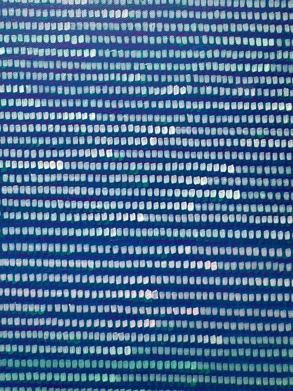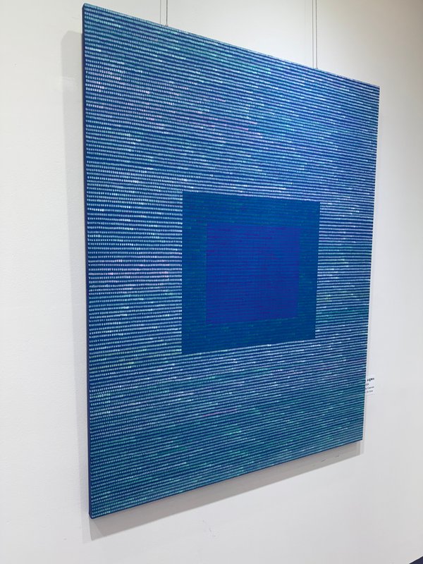 작가는 자연스러운 배열에서 비롯되는 조형성과, 그 조형성이 만들어내는 편안함을 화면에 담아내고자 합니다. 작품 전반을 관통하는 정돈된 리듬은 복잡한 사고를 잠시 내려놓게 하며, 감상자의 시선과 감각을 차분한 상태로 이끕니다. 겉으로는 무용해 보일 수 있는 반복과 간격은 화면 전체의 균형을 형성하는 핵심적인 조형 요소로 작동합니다. 이러한 구조는 특정 지점에 시선을 고정시키기보다 화면 전체를 부드럽게 순환하게 하여, 자연스럽게 긴장이 완화되는 감상 경험을 만들어냅니다. 또한 선을 긋고 지우며 다시 채워 나가는 과정이 화면에 고스란히 남아 있어, 작품은 한 번에 즉각적으로 읽히기보다는 오래 바라볼수록 감정이 정리되는 유형의 회화로 완성됩니다. 작품은 계절의 빛이나 시간대에 따라 화면의 밀도와 여백이 서로 다르게 인식되며, 동일한 공간에서도 매번 다른 표정과 분위기를 형성합니다.