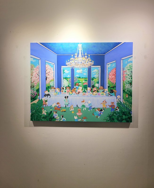 오경자 작가는 반려견 '메이'와 상상 속 동물 친구들을 중심으로 펼쳐지는 따뜻한 풍경을 화폭에 그려낸다. 작가는 잠재된 감정을 꺼내 창작 활동을 통해 곱게 걸러내고, 이를 기반으로 작품에 위로의 정서를 담는다. 그렇기에 작품은 단순한 상상화가 아니라, 자신의 감정을 성찰하고 돌볼 줄 아는 작가의 세심함이 깃든 표현 매체이기도 하다. 반려견의 일상에서 비롯된 순수하고 생명력 넘치는 기운은 작가 특유의 부드럽고 화사한 색감을 통해 화면 전반을 따스하게 물들인다. 마치 동화 속 한 장면과 같은 오경자 작가의 환상적이고 서정적인 작품은, 관람객으로 하여금 유년 시절의 기억과 순수했던 모습들을 다시 불러일으키는 특별한 경험을 제공한다.
