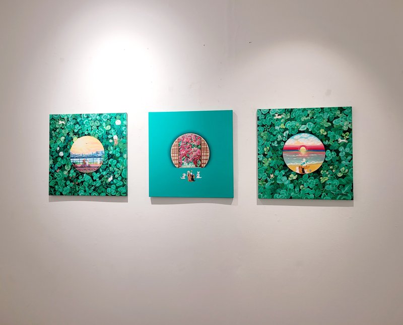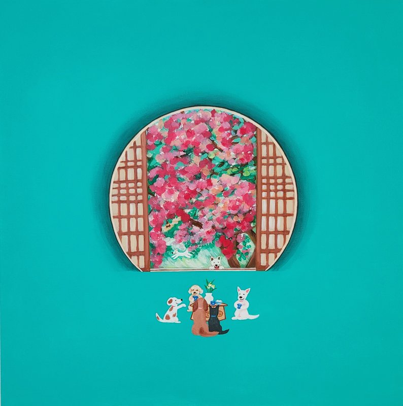 오경자 작가는 반려견 '메이'와 상상 속 동물 친구들을 중심으로 펼쳐지는 따뜻한 풍경을 화폭에 그려낸다. 작가는 잠재된 감정을 꺼내 창작 활동을 통해 곱게 걸러내고, 이를 기반으로 작품에 위로의 정서를 담는다. 그렇기에 작품은 단순한 상상화가 아니라, 자신의 감정을 성찰하고 돌볼 줄 아는 작가의 세심함이 깃든 표현 매체이기도 하다. 반려견의 일상에서 비롯된 순수하고 생명력 넘치는 기운은 작가 특유의 부드럽고 화사한 색감을 통해 화면 전반을 따스하게 물들인다. 마치 동화 속 한 장면과 같은 오경자 작가의 환상적이고 서정적인 작품은, 관람객으로 하여금 유년 시절의 기억과 순수했던 모습들을 다시 불러일으키는 특별한 경험을 제공한다.
