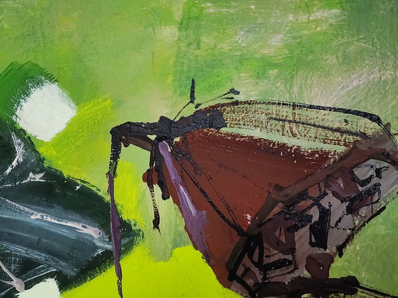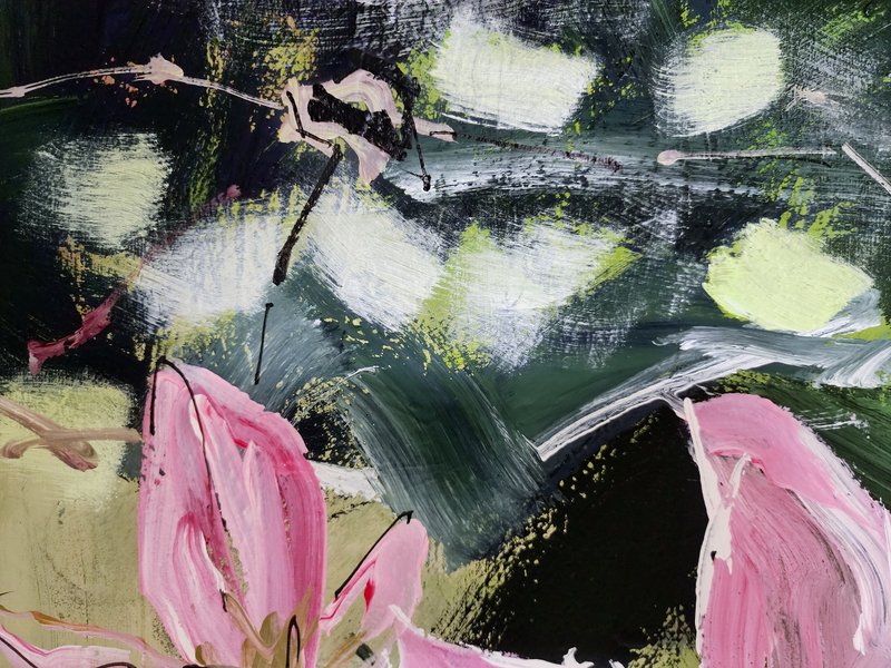 그리새 작가의 작업은 감정을 통제의 대상으로 삼기보다, 흐르게 두는 태도에서 출발한다. 형상과 비형상의 경계에서 물감은 멈추지 않고 유영하며, 재료의 산화와 압착, 긁고 문지르는 반복적 행위는 의도와 우연이 교차하는 시간을 화면 위에 축적한다. 철가루가 남긴 입자층과 파편화된 색면, 임파스토와 스크래치의 흔적은 지층처럼 쌓인 감정의 농담이자 지나간 시간의 기록이다. 산의 능선, 밤하늘의 꽃별, 해바라기와 사계절의 꽃은 구체적 대상을 재현하기보다 이러한 흐름 속에서 자연스럽게 떠오른 내면의 표정에 가깝다. 화면은 묵묵한 침묵을 유지하지만 비어 있지 않으며, 물성과 리듬이 응축된 울림으로 감상자를 머물게 한다. 작가의 회화는 감정을 설명하거나 규정하기보다, 우연을 받아들이는 삶의 태도 속에서 비로소 형체를 얻는 내면의 풍경을 조용히 기록한다.