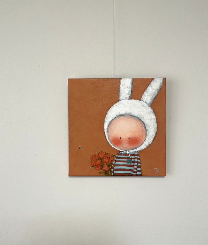 구름 작가의 작품은 일상 속에서 무심히 지나치기 쉬운 장면과 사소한 순간들에서 출발한다. 흐드러지게 핀 꽃, 스쳐 가는 바람, 계절마다 달라지는 공기의 결, 그리고 마음의 미세한 움직임까지 작가는 쉽게 잊히는 감각들을 천천히 응시하며, 이를 차분하고 따뜻한 색조로 캔버스 위에 담아낸다. 부드럽고 몽글몽글한 붓 터치는 화면에 은은한 온기를 더하며, 고요한 시간의 흐름을 형성한다. 작품 속에 등장하는 토끼는 작가의 감정과 시선을 투영하는 매개체로, 장면 속에 자연스럽게 스며들며 관람자의 감정과 호흡할 여백을 만든다. 그 안에는 위로와 그리움, 작은 기대, 혹은 말없이 머무는 고요한 정서가 담겨 있다. 작가는 회화를 통해 언어로는 다 담아낼 수 없는 감정의 결을 시각화하고 있다. 물감이 겹겹이 쌓이며 화면을 이루듯, 감정 또한 시간 속에서 천천히 축적되고, 그 과정은 하나의 평온한 상태로 이어진다. 작품은 관람자에게 잠시 머물 수 있는 정서적 공간을 열어주며, 부드러운 색채와 온화한 분위기 속에서 고요한 평온을 경험하게 한다.